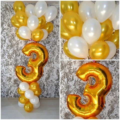 Высокая стойка, золотая или серебрянная цифра и 15 обработанных шаров 12"/31 см.