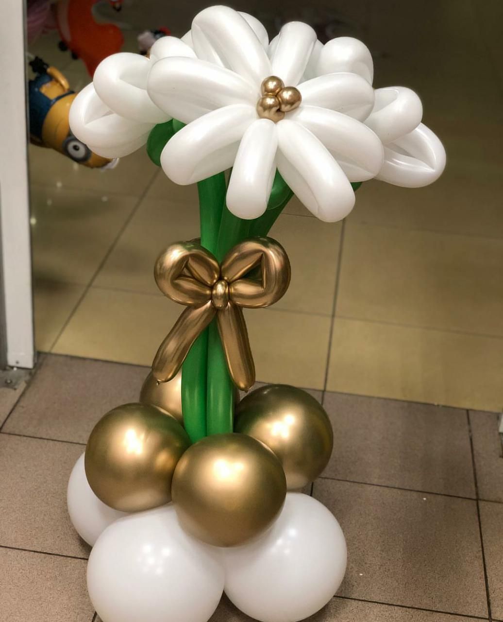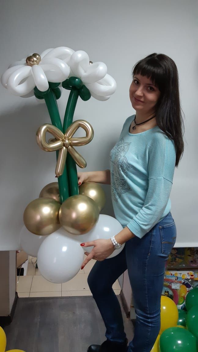Ромашки крупные, а бантик и серединки из шаров хром привлекательны и элегантны.