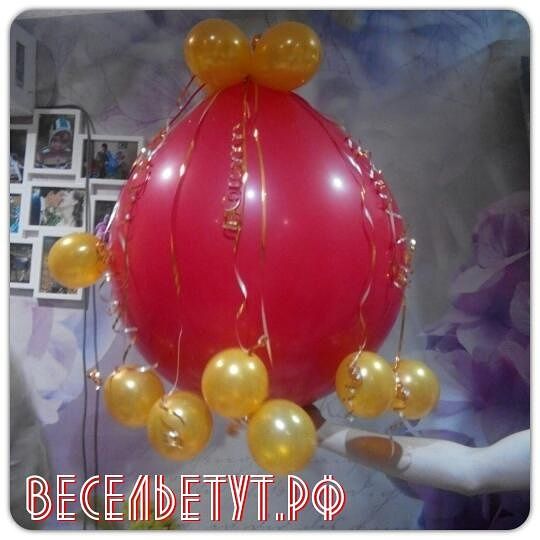 Шар сюрприз- это большой воздушный шар, подвешенный к потолку или закрепленный на тросе, который в определенный момент лопается и оттуда рассыпается по всему помещению разноцветный фейерверк маленьких воздушных шариков, конфетти, лепестки роз, нарезанная на полоски фольгированная бумага, блестки и т.д.