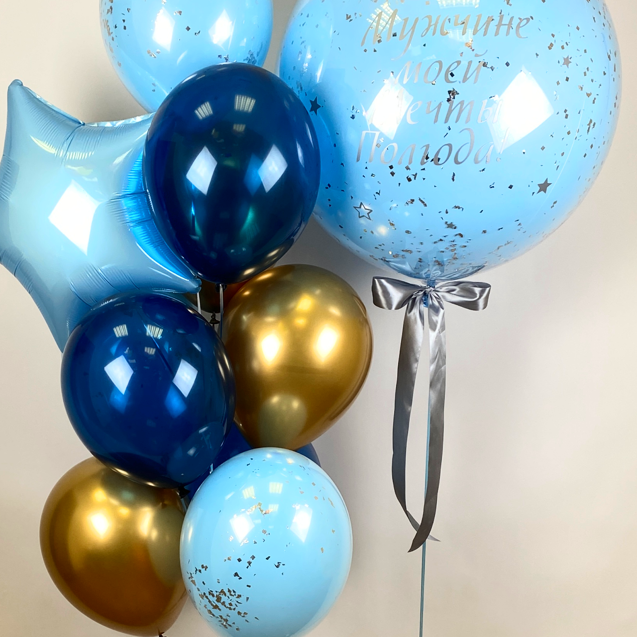 - шар зеркальный голубой с блёстками, 60 см;